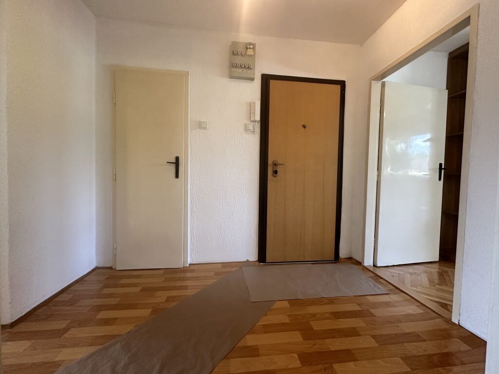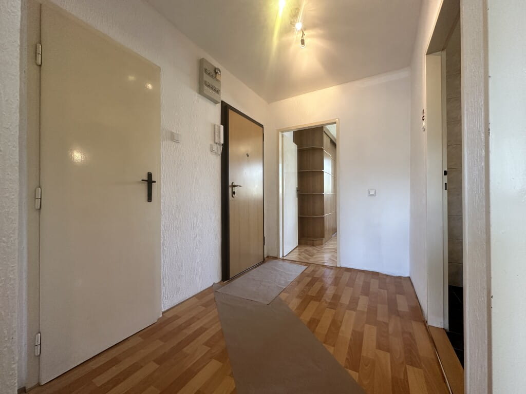 Stan se sastoji od; hodnika, kuhinje sa trpezarijom, ustakljenog balkona, dnevnog boravka, veće sobe, kupatila i ostave. Promijenjena nova PVC vanjska stolarija, grijanje centralno gradsko (gusani radijatori), blind vrata, pod – parket (u sobama). Primarna orijentacija jugoistok, svijetao i prozračan stan sa dosta dnevne svijetlosti.